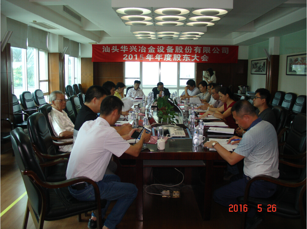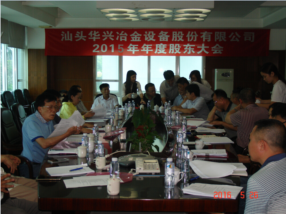2016年5月26日上午,華興股份2015年度股東大會(huì)在汕頭公司召開(kāi),會(huì)議由佘京鵬董事長(zhǎng)主持,公司股東、董事、監(jiān)事和高級(jí)管理人員出席了現(xiàn)場(chǎng)會(huì)議。國(guó)信信揚(yáng)(汕頭)律師事務(wù)所主辦律師見(jiàn)證現(xiàn)場(chǎng)會(huì)議,并出具了法律意見(jiàn)書(shū)。