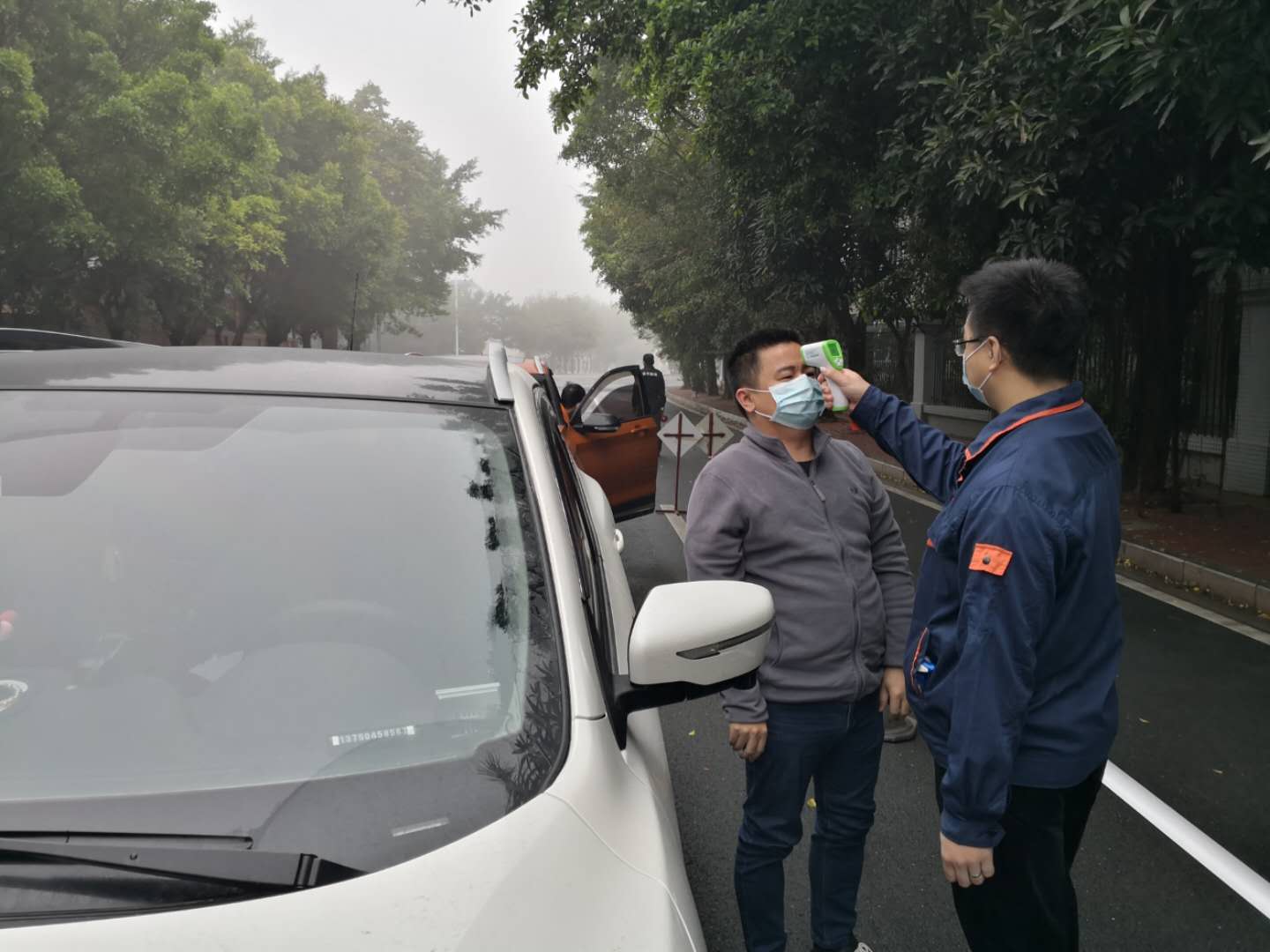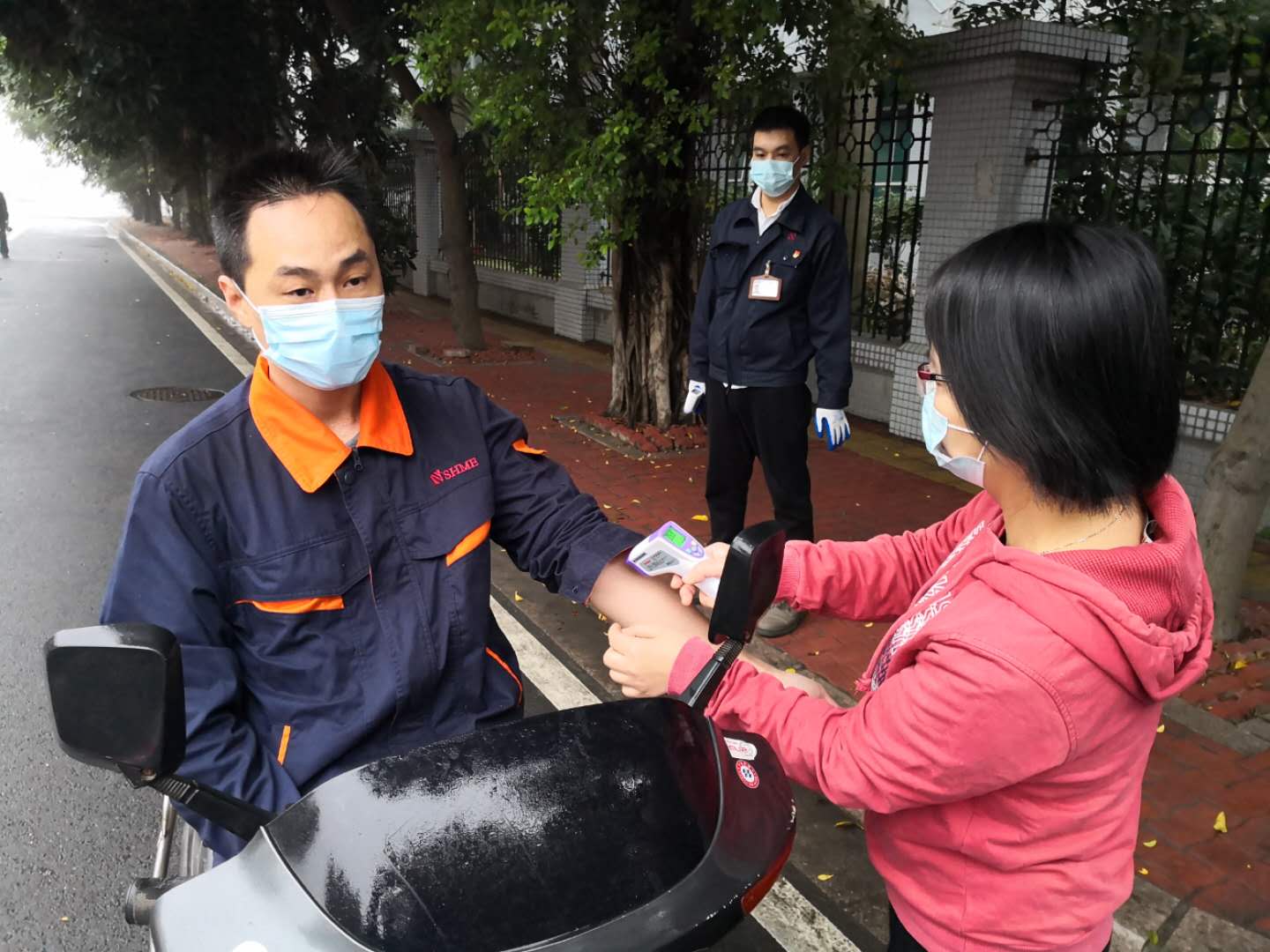 人資部副部長(zhǎng)為入廠員工測(cè)量體溫